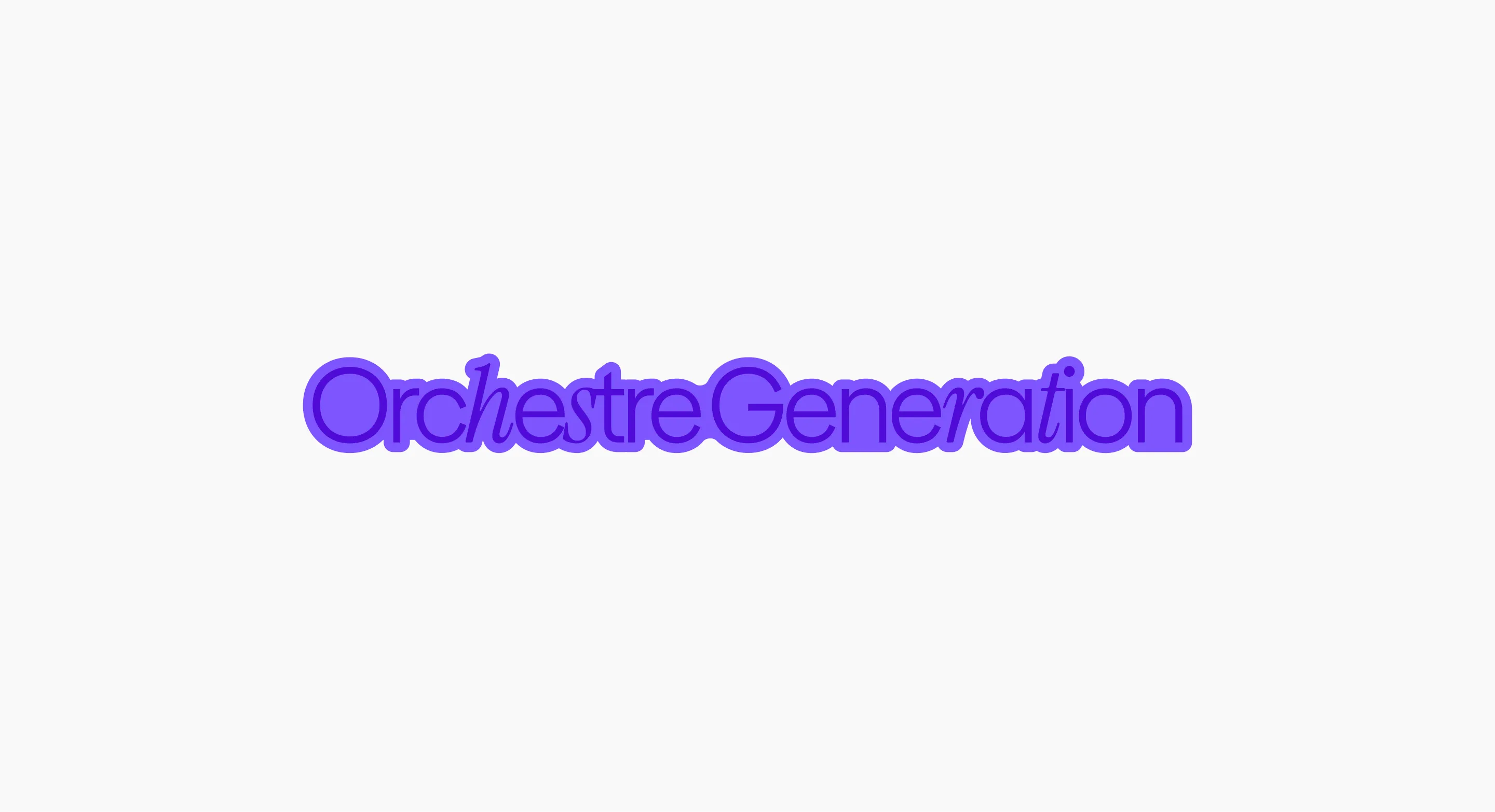 L’identité visuelle d’Orchestre Génération traduit l’énergie scénique et l’esprit festif du groupe à travers un logo pensé comme un sticker, aux formes dynamiques et à la couleur violette pop, affirmant une image jeune et contemporaine.
